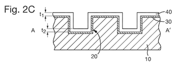 “applying a coating of a colour-shifting coating structure (referred to as a “colour-shifting coating structure”)………such that such that a thickness of the coating of the colour-shifting coating structure land areas and such that a thickness of the coating of the colour-shifting coating structure in the first recess or recesses is greater than or less than a thickness of the coating of the colour-shifting coating structure on the one or more first land areas.